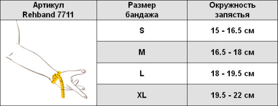 - Бандаж Rehband 7711 выпускается в двух видах – для правой и левой руки, а также в широком диапазоне размеров, позволяющих носить бандаж спортсменам с любым обхватом руки.