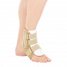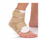 Изготовлен из перфорированного, влаговпитывающего, гипоаллергенного материала, надежно фиксирующего голеностопный сустав. Внутренний слой из хлопка создает дополнительный комфорт при носке бандажа. Усилен 4-мя моделируемыми анатомическими шинами для боковой стабилизации голеностопного сустава. Система застежек «Велкро» обеспечивает оптимальную поддержку сустава. Цвет: бежевый