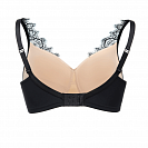 Гладкие чашки придают бюсту красивую округлую форму. Они украшены кружевом, которое создает эффект бралетта. Завышенная линия декольте, высокая пройма и широкая спинка, которая у застежки становится выше, а также кружево, заходящее на бретели, скрывают возможные неровности и гарантируют безупречную посадку.