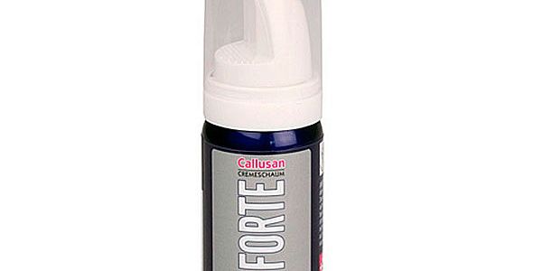 Крем-пенка Каллюзан "Форте" (Callusan Forte) - cпециальный крем-мусс для суперинтенсивного ухода за очень грубой, сухой и потрескавшейся кожей ног с сильными ороговениями и проблемными участками. Высокое содержание карбамида (мочевины) интенсивно увлажняет и размягчает кожу. Масло авокадо и масло Ши, входящие в состав крем-пенки Callusan, возвращают коже мягкость и эластичность. Болезненные ощущения в местах твердых ороговений пропадают, а кожа становится ухоженной. Не содержит ароматизаторов .