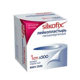 Лейкопластырь Silkofix на нетканной основе 1х500 см. SILKOFIX Описание гипоаллергенный для особо чувствительного типа кожи микропористый воздухопроницаемый не нужно ножниц Микропористый материал позволяет коже поддерживать воздухо- и влагообмен, что предотвращает риск мацерации кожи. Легко рвется в поперечном направлении за счет особенностей материала. Легко и безболезненно снимается, не оставляет следов после удаления. Изготовлен из нетканой вискозы с применением гипоаллергенного акрилатного клея. Размещен на пластиковой катушке. Предназначен для фиксации защитных повязок, тампонов, зондов и катетеров. Имеются противопоказания. Необходима консультация врача. Официальная информация по применению находится в инструкции. Перед применением необходимо внимательно ознакомиться с инструкцией, находящейся в упаковке. Silkofixula /upload/iblock/6b2/6b2bb9edd339e7440ed887f6f0c02b2c.jpg