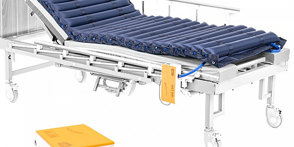 Малогабаритный электрокомпрессор размещается на полу или на боковой панели кровати. Регулировка задаваемого давления осуществляется в зависимости от массы пациента. Противопролежневый матрас обладает эффектом непрерывного массажа, предотвращает застои и не дает развиваться некрозу мягких тканей лежачего пациента.