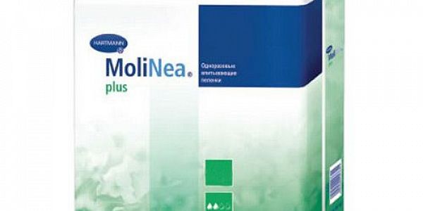 Пеленки одноразовые MoliNea Plus 20 шт. HARTMANN Описание Пеленка одноразовая MOLINEA PLUS 150 шт. Размеры: 60х90 см; 90х180 см.  Очень высокая степень впитываемости. Верхний слой пеленки изготовлен из гипоаллергенного нетканого материала. Внутренний слой из распушенной целлюлозы, отбеленной без хлора, равномерно впитывает и распределяет жидкость. Края пеленки завернуты внутрь для дополнительной защиты от протекания. Внешний слой из водонепроницаемой нескользящей пленки. Запатентованная структура поверхности (прессованные дорожки) способствует равномерному распределению жидкости. Уровень впитываемости: 2 капли. Назначение Используются для дополнительной защиты постельного белья и других поверхностей, при проведении гигиенических и диагностических процедур. ula /upload/iblock/06f/06f3c40884e79779ea60ef3f0c2d8cb8.jpg