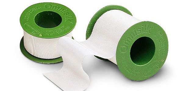 - Гипоаллергенный фиксирующий пластырь из белого искусственного шёлка с синтетическим каучуковым клеем;