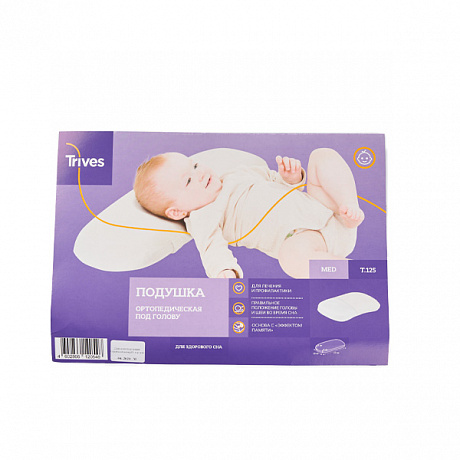 Подушка ортопедическая Тривес для детей до 2,5лет с эффектом памяти Т.125 ТРИВЕС Описание Старое наименование артикула: ТОП-125 конструкция подушки разработана для правильного развития шейного отдела позвоночника и головы, учитывая их анатомо-физиологические особенности; подушка снабжена внутренним несъемным чехлом из хлопка; наволочка съемная; подушка способствует хорошему эмоциональному состояния малыша; наполнитель – пенополиуретан повышенной эластичности; габариты подушки: 37х23х5/4 см. Показания профилактика приобретенной кривошеи; комплексное лечение врожденной кривошеи; предотвращение деформаций затылочной области на ранних стадиях рахита; профилактика развития асимметрии головы; здоровым детям для правильного развития во время сна. Обеспечивает бережную поддержку головы и шеи ребенка; снижение нагрузки на шейный отдел позвоночника; нормализацию мышечного тонуса и кровообращения головы и шеи. Уход за изделием подушка – сухая чистка; не класть на изделия давящие и колюще-режущие предметы; не использовать химический метод чистки; наволочку стирать в теплой воде мягкими моющими средствами; отжимать без выкручивания, сушить вдали от нагревательных приборов и прямого солнечного света. Состав наполнитель:  100% - пенополиуретан, наволочка: 60% - полиэстер, 40% - хлопок. Т.125ula /upload/iblock/bb6/bb619cb10e734ad7ba5121339d694431.jpg