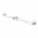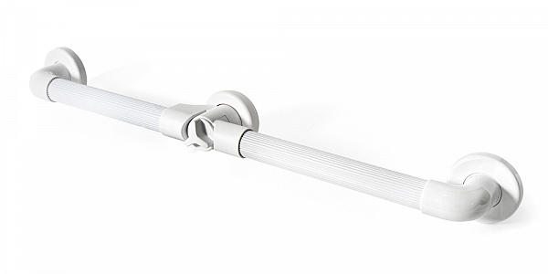 Поручень выполнен из гигиенического ударопрочного пластика. Выдерживает нагрузку до 115 кг. Крепеж идет в комплекте.