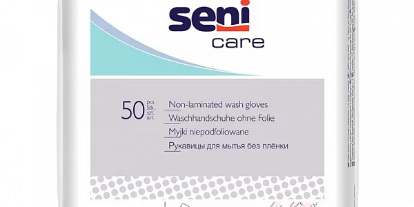Рукавицы для мытья Seni Care без водонепроницаемой пленки 50 шт