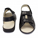 Верх выполнен из натуральной гладкой кожи чёрного цвета, подкладка, также кожаная, обладает мелкой перфорацией, обеспечивающей непрерывный влаго- и теплообмен при ходьбе. Несъёмная ортопедическая стелька с покрытием из натуральной кожи дополнительно амортизирует каждый шаг, оберегает от развития деформационных процессов в ногах.