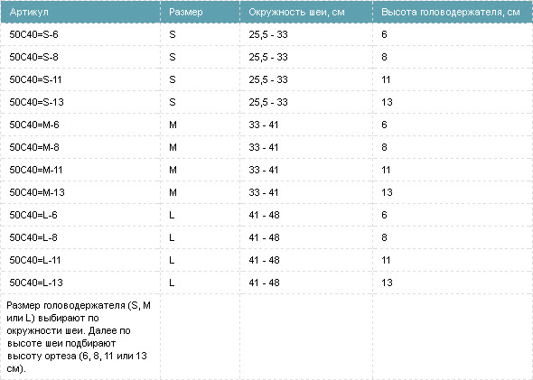 Размер головодержателя (S, M, L) выбирается в зависимости от окружности шеи.