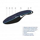 Ортопедические стельки Motion Tech со смягчающим слоем из материалов Bouncepur / Memopur® и новым каркасом укороченной длины с отверстием каплевидной формы. Материал Bouncepur за счет ячеистой структуры обладает высокими амортизационными свойствами, что обеспечивает повышенную медицинскую эффективность. Пяточное отверстие, за счет увеличенного размера, разгружает большую часть подошвенного апоневроза. Стелька имеет метатарзальный валик среднего размера, выраженную выкладку сводов, боковую поддержку и чашеобразное углубление для пятки. Верхнее покрытие стельки изготовлено из материала Sahara Skin темно-синего цвета.